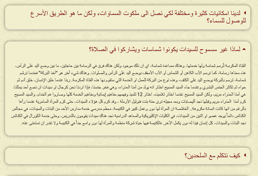 وفى موازاة البيان الرسمي، كان الموقع الرسمى للكنيسة القبطية نشر توضيح المبدأ الكنسي بخصوص دور المرأة، فالكنيسة تؤكد أن الفتاة المكرسة تُعتبر شماسة بالفعل، ولكن بنظام يختلف عن الرسامة الكهنوتية الكاملة، إذ يُكتفى بمنحهن بركة وضع اليد على الكتف، وليس على الرأس كما يحدث مع رسامة الشمامسة والآباء الكهنة والأساقفة.