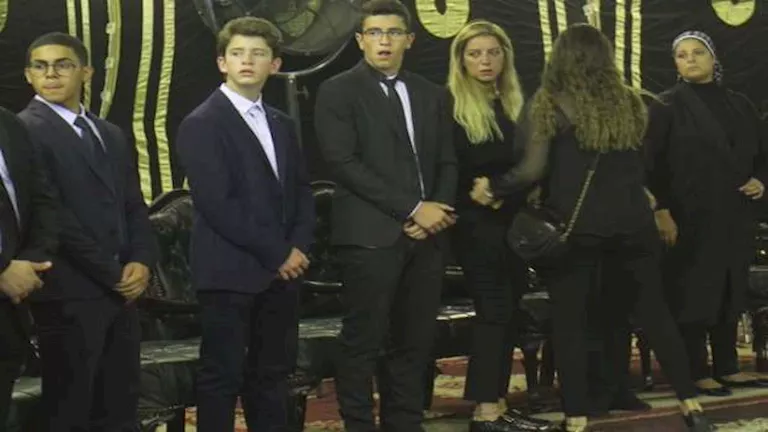 6- ظهر نجلي ريم مصطفى أثناء تلقيها العزاء في والدها الراحل عام 2017 من مسجد عمر مكرم .