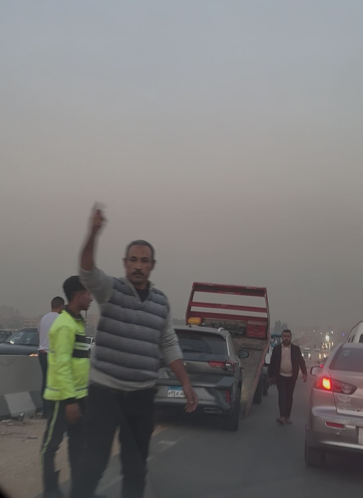 شهد الطريق السياحي في الاتجاه المؤدي إلى دائري المنيب والمعادي، الان حالة من الشلل المروري التام إثر تصادم عدة سيارات، ما أسفر عن تحطم أجزاء من بعض المركبات وتناثر الزجاج على الطريق، وتوقف شبه كامل للحركة وسط تزاحم شديد.