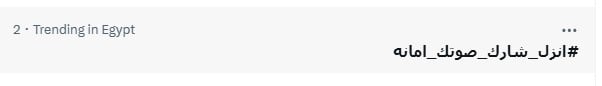 تصدر هاشتاج انزل شارك صوتك أمانة ، لليوم الثاني، تريندات منصة X في مصر، حيث يشارك المدونون صور طوابير الناخبين أمام اللجان الفرعية في مختلف محافظات المرحلة الثانية من انتخابات مجلس النواب 2025 ، وذلك لتحفيز جموع المصريين للمشاركة في الماراثون الانتخابي وعدم الانسياق وراء الدعوات السلبية للعزوف عن المشاركة.