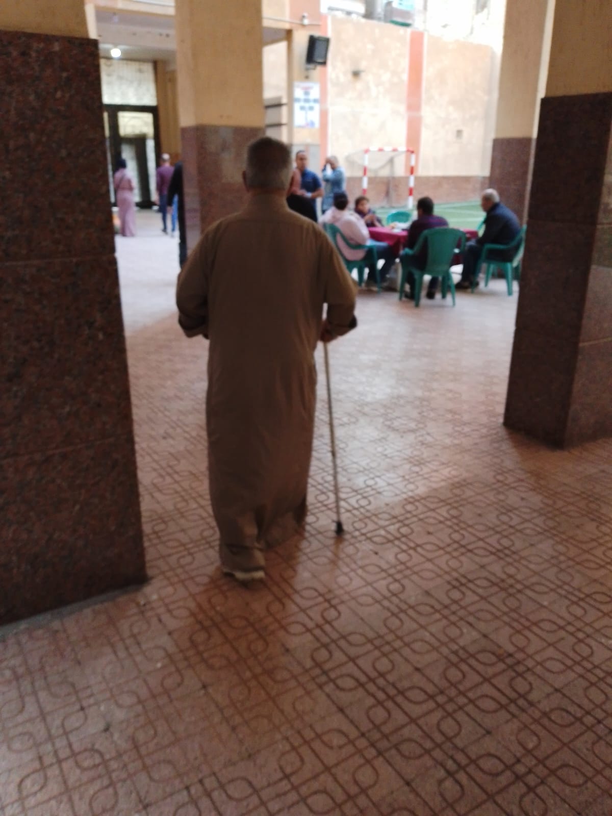 وفى مشهد آخر، استندت ناخبة على ابنتها خلال دخولها للجنة الفرعية بالمطرية للإدلاء بصوتها، فيما حرص مسن على الذهاب والإدلاء بصوته في الصندوق الانتخابي بعين شمس.