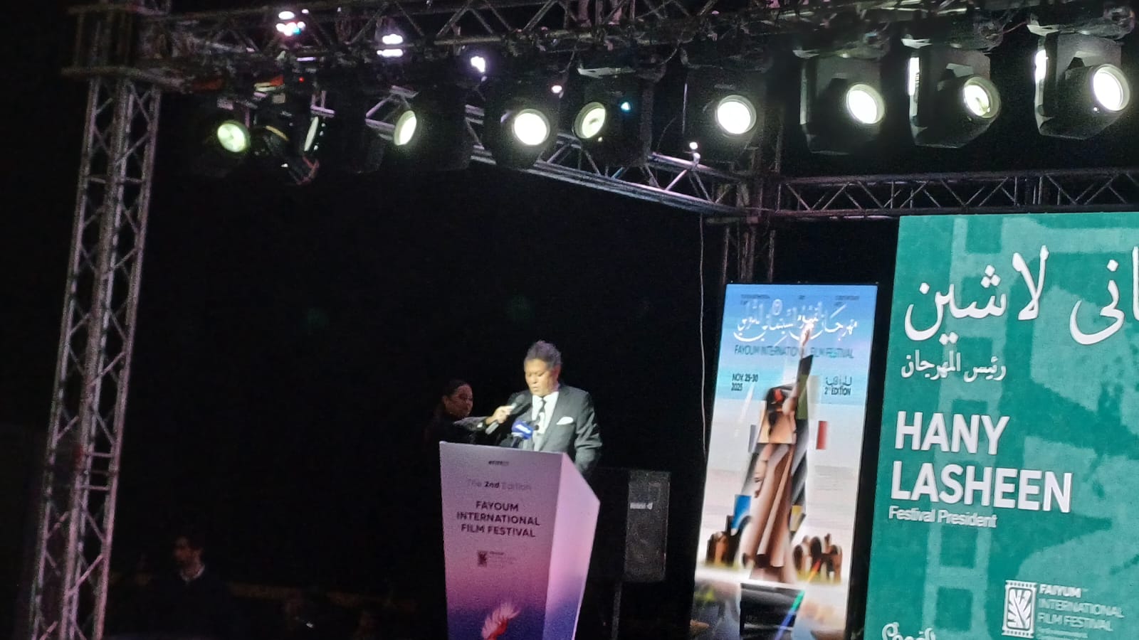 كما قال المخرج هاني لاشين إنه يوجه الشكر لوزير الثقافة الدكتور أحمد فؤاد هنو على دعمه الكبير للمهرجان، كما وجه الشكر لوزيرة البيئة على دعمها المستمر.