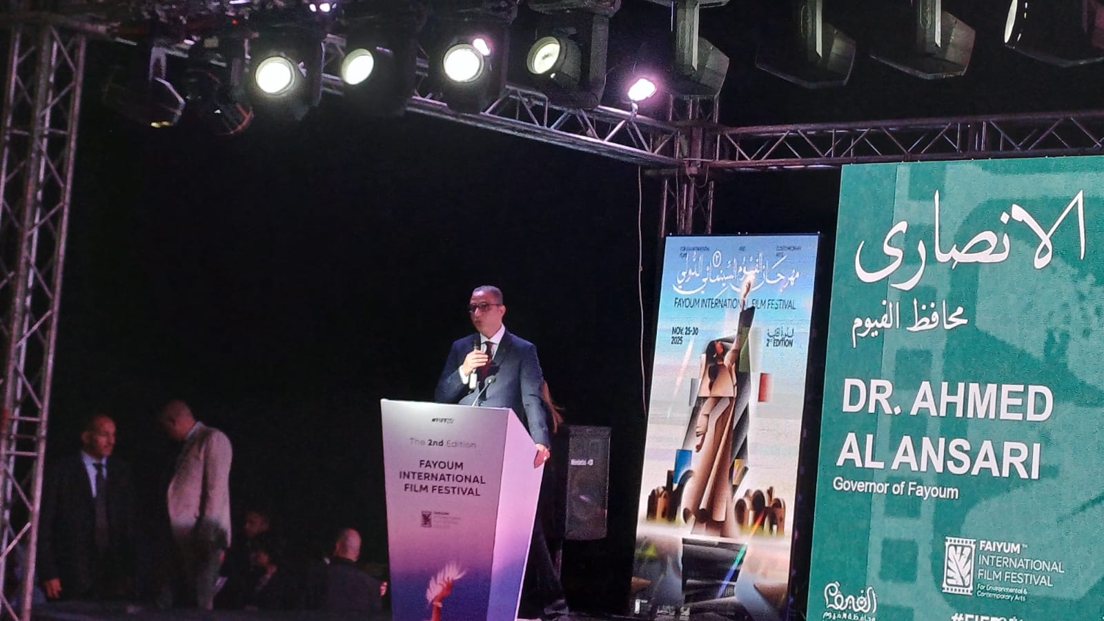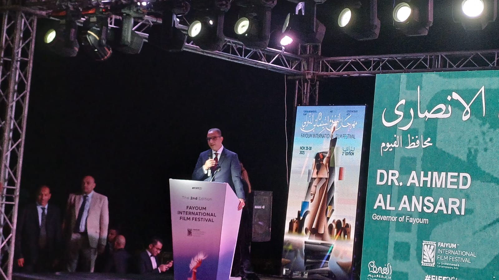 انطلق حفل افتتاح مهرجان الفيوم الدولي لأفلام البيئة والفنون المعاصرة في دورته الثانية بحضور كل من محافظ الفيوم أحمد الأنصاري، ورئيس المهرجان المخرج هاني لاشين.