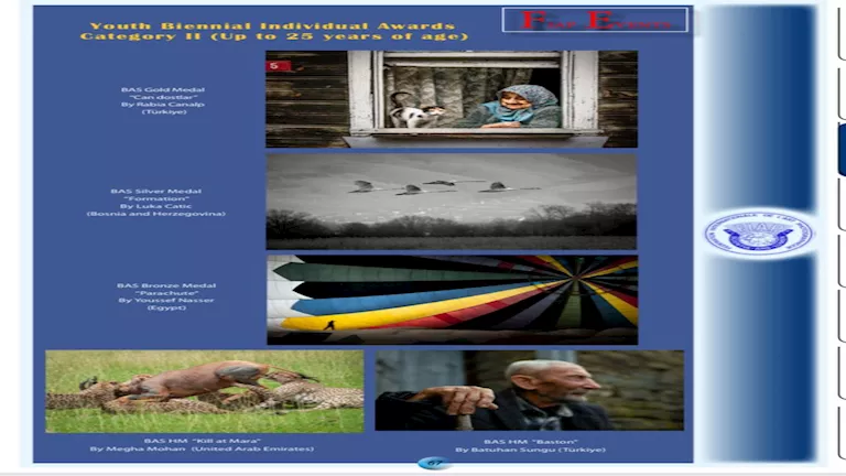 للدورة الثانية على التوالى بعد فوزهم بالمركز الثالث فى دورة ٢٠٢٣ حقق شباب المصورين المصريين إنجازًا دوليًا جديدًا بعد حصدهم الجائزة الشرفية ضمن أفضل ١٠ دول شاركت في "بينالي الشباب للاتحاد الدولي للتصوير الفوتوغرافي (FIAP) 2025 "، وذلك بمشاركة واسعة من أكثر من 40 دولة حول العالم.