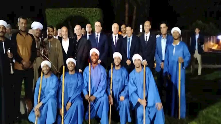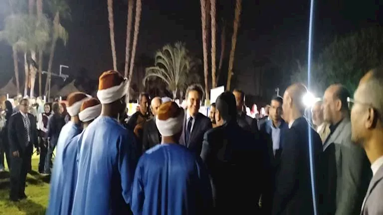 وعلى هامش الحفل قدمت فرقة التحطيب بالأقصر، فقرة فنية حازت على إعجاب الجمهور، والتقطوا عددًا من الصور مع وزير الثقافة ومحافظ الأقصر.