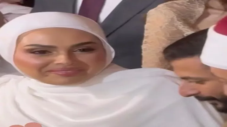 وارتدت فريدة ابنة النجم محمد هنيدي فستان أبيض بسيط ومحتشم بتطريز خفيف من اللولي، وحجاب خالي من التطريز والاستراس أبرز جمالها.