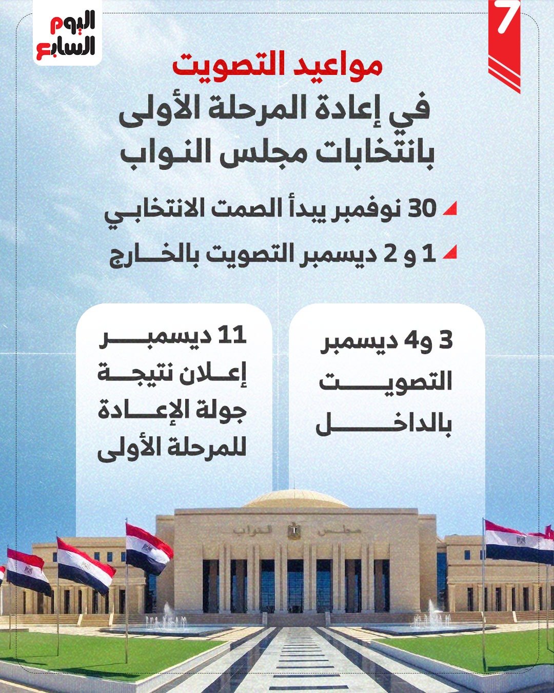 وحول المواعيد المتبقية من عمر الانتخابات وفق الجدول الزمنى للانتخابات لإعادة المرحلة الأولى بانتخابات مجلس النواب