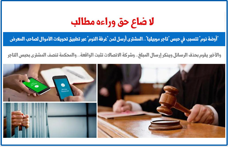 "أوضة نوم" تتسبب في حبس "تاجر موبيليا".. المشترى أرسل ثمن "غرفة النوم" عبر "الكاش" لصاحب المعرض.. والأخير يقوم بحذف الرسائل وينكر تحويل المبلغ.. وشركة الاتصالات تثبت الواقعة.. والمحكمة تنصف المشترى بحبس التاجر