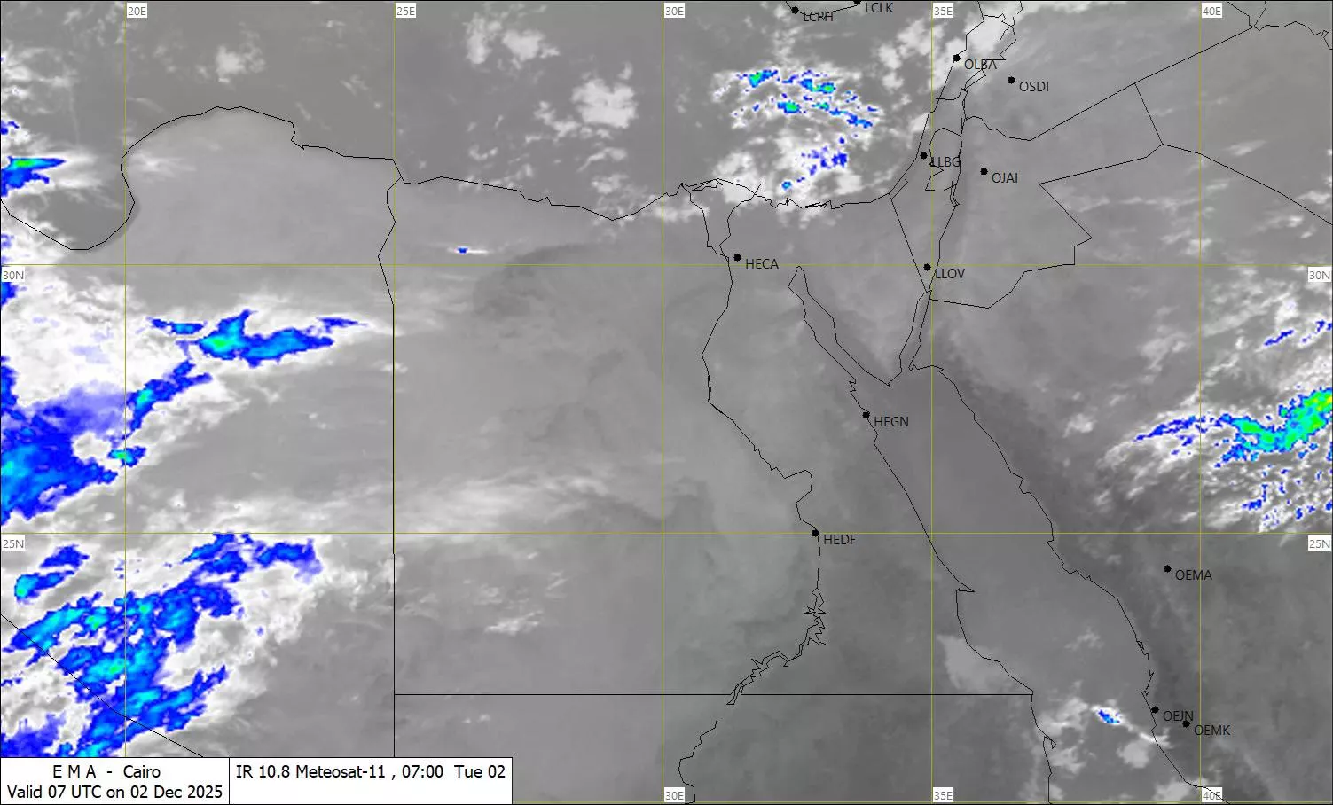 أعلنت هيئة الأرصاد الجوية، استمرار تكاثر السحب المنخفضة والمتوسطة الممطرة على مناطق متفرقة من السواحل الشمالية وشمال الوجه البحري وخاصة على السواحل الشمالية الشرقية.