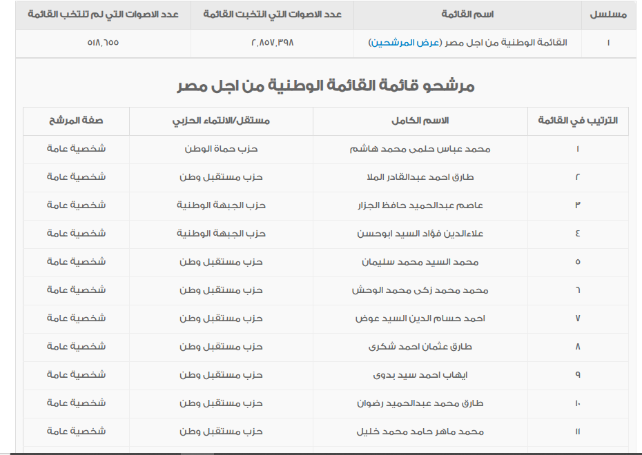 وأعلنت الهيئة الوطنية للانتخابات فوز القائمة الوطنية من أجل مصر بقطاع القاهرة وجنوب ووسط الدلتا فى المرحلة الثانية لانتخابات مجلس النواب.