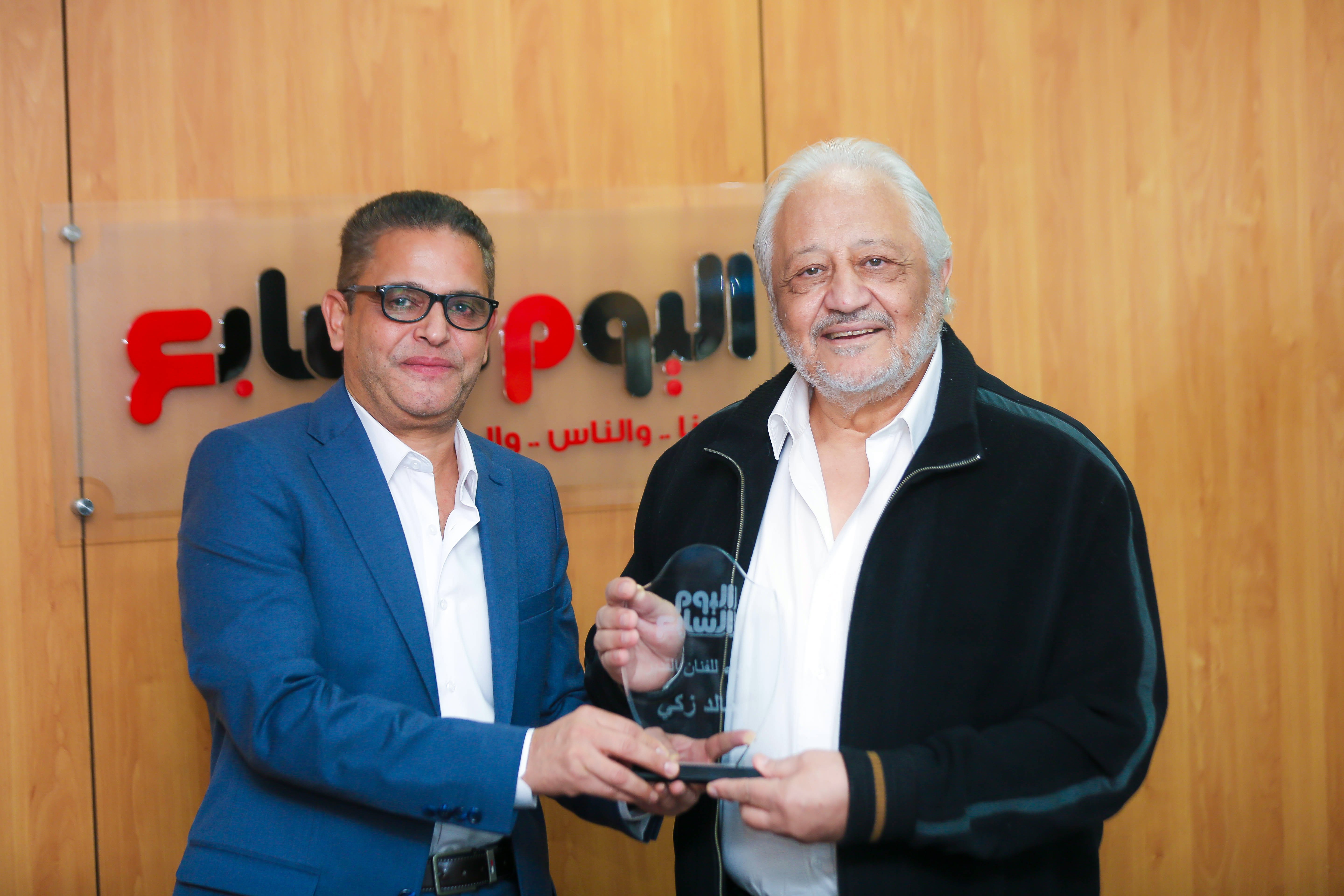 كرم اليوم السابع الفنان القدير خالد زكي ، تقديرا لمشواره الفني الكبير، وقام بتكريمه الكاتب الصحفي عبد الفتاح عبد المنعم رئيس تحرير اليوم السابع، وحرص على استقباله كلا من الكاتبة الصحفية علا الشافعى رئيس مجلس الإدارة، ورؤساء التحرير التنفيذين باليوم السابع الكاتب الصحفي دندراوي الهواري، والكاتبة الصحفية همت سلامة، والكاتب الصحفي وائل السمري، إلى جانب رئيس قسم الفن الكاتب الصحفي علي الكشوطي، والزملاء في قسم الفن الكاتبة الصحفية شيماء منصور، والكاتب الصحفي مصطفى قصبي، والكاتبة الصحفية لميس محمد.