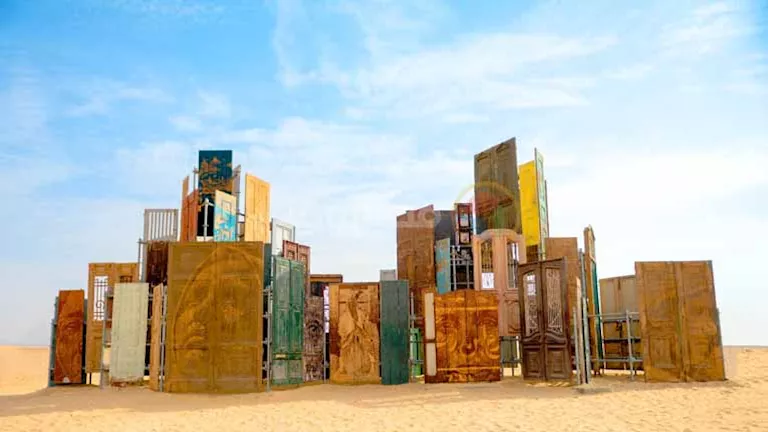 في لوحة فنية متكاملة خطها معرض "الأبد هو الآن" (Forever is Now) ، عانقت أعمال فنية تتسم بالخروج عن المألوف رمال الجيزة والأهرامات الثلاث، في مشهد جذب أنظار السياح والوافدين، ودفعهم لالتقاط الصور التذكارية معها.