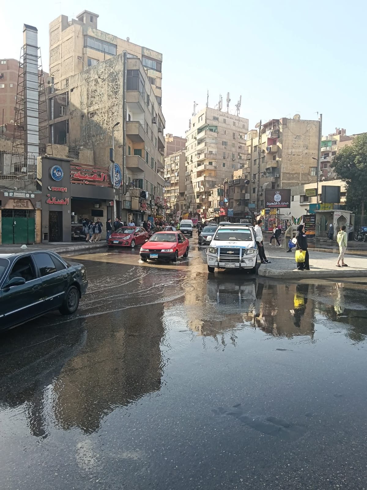 تسبب كسر ماسورة مياه بميدان حدائق القبة فى ظهور كثافات مرورية أمام حركة المركبات، وسط تواجد الخدمات المرورية لمتابعة حركة السيارات.