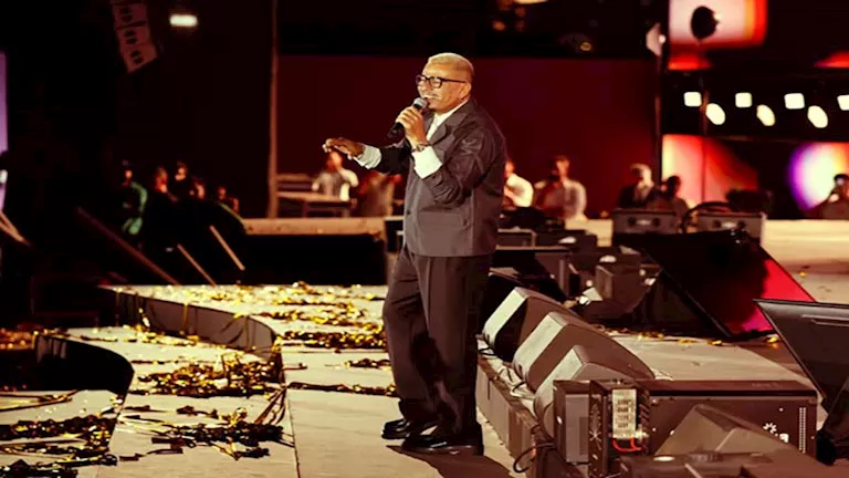 محمد صبحي يرقص على المسرح خلال تكريمه ويطمئن جمهوره على حالته الصحية