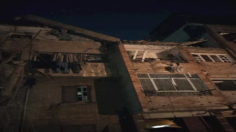 وأظهر مقطع الفيديو سير 3 أشخاص في الشارع قبل أن يفاجأوا بصوت انفجار قوي، تبعته لحظات من تطاير أجزاء من المبنى وسقوطها على الطريق.
