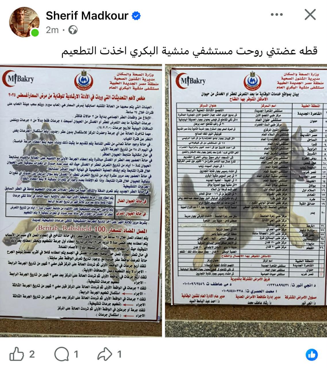 كشف الإعلامي شريف مدكور عن تعرضه للعض من قبل قطة، وهو ما استدعي منه التوجه إلى المستشفى لأخذ التطعيم، حسبما ذكر عبر حسابه على موقع فيس بوك .