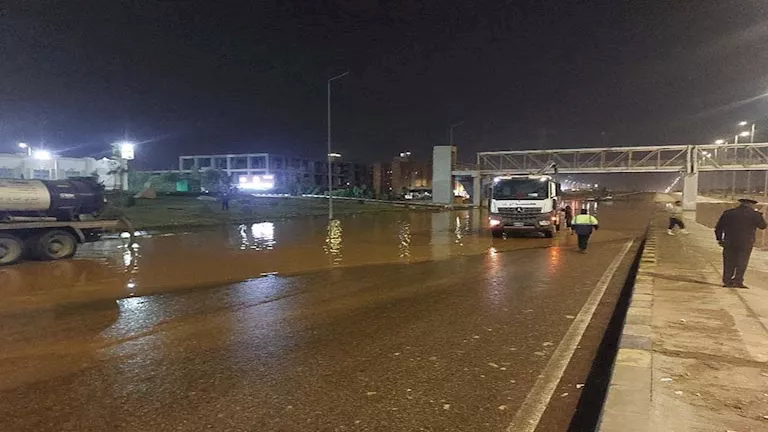 تسبب كسر في ماسورة مياه بطريق الواحات أمام مساكن عثمان بأكتوبر، إلى تعطّل حركة السيارات وازدحام مروري كثيف.