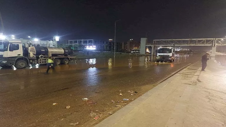 تم اتخاذ كافة الإجراءات المرورية اللازمة لضمان سلامة السائقين واستئناف الحركة بسلاسة بعد السيطرة على تدفق المياه.