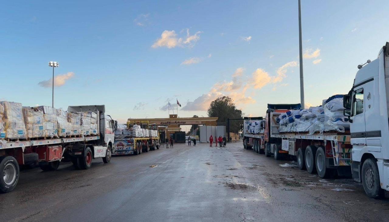 ويتواجد الهلال الأحمر المصري كآلية وطنية لتنسيق وتفويج المساعدات إلى غزة، على الحدود منذ بدء الأزمة حيث لم يتم غلق معبر رفح من الجانب المصري نهائيًا، وواصل تأهبه فى كافة المراكز اللوجستية وجهوده المتواصلة لدخول المساعدات التي بلغت أكثر من نصف مليون طن من المساعدات الإنسانية والإغاثة، وذلك بجهود 35 ألف متطوع بالجمعية.