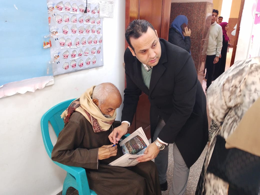 ساعد المستشار إيهاب المهدي ، رئيس اللجنة 43 الفرعية في المطرية، ناخبا مسنا على الإدلاء بصوته في الانتخابات البرلمانية .