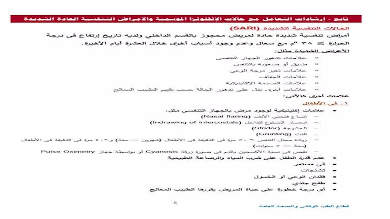 ثالثًا: الحالات الشديدة، وهي الحالات التي تعاني أعراضًا شبيهة بالإنفلونزا مصحوبة بعلامات تدهور في الجهاز التنفسي، مثل ضيق أو صعوبة التنفس، أو تغير مستوى الوعي، أو الجفاف، أو علامات الصدمة، إضافة إلى حالات الالتهاب الرئوي التي يتم تشخيصها إكلينيكيًا أو بالأشعة.