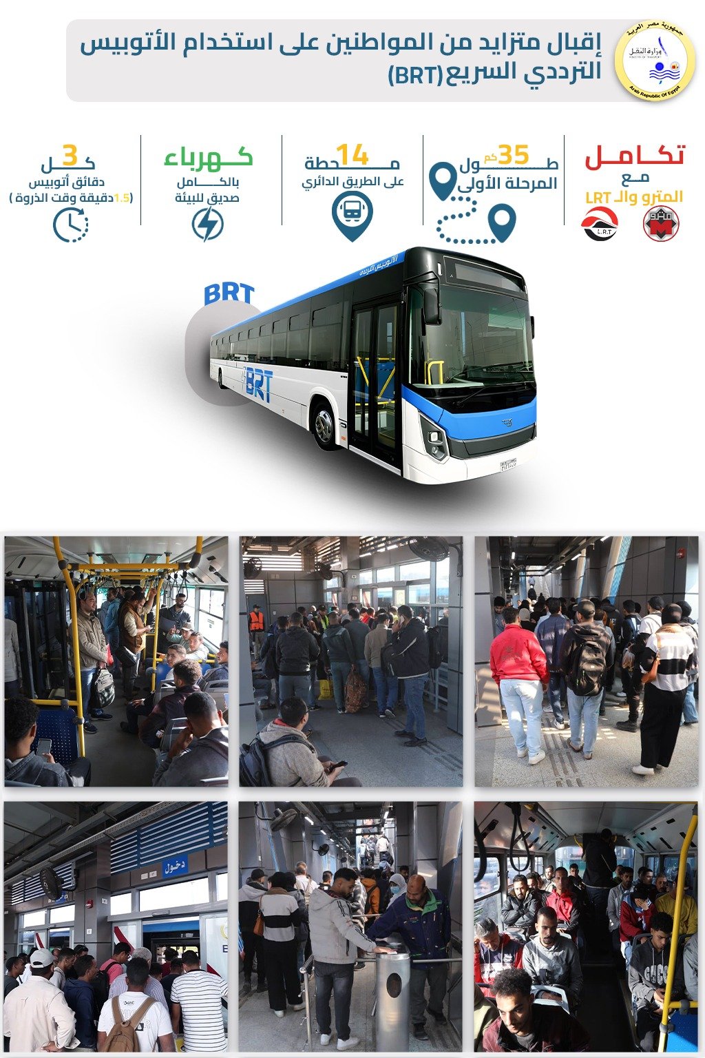 يشهد مشروع الأتوبيس الترددي السريع BRT بالطريق الدائري إقبالًا متزايدًا من المواطنين منذ بدء تشغيله، في ظل ما يقدمه من خدمة نقل جماعي حديثة وآمنة وصديقة للبيئة، تسهم في تسهيل حركة التنقل وتقليل الزحام المروري، وربط عدد كبير من المناطق الحيوية بشرق وغرب العاصمة في زمن قياسي وبمستوى خدمة متميز.