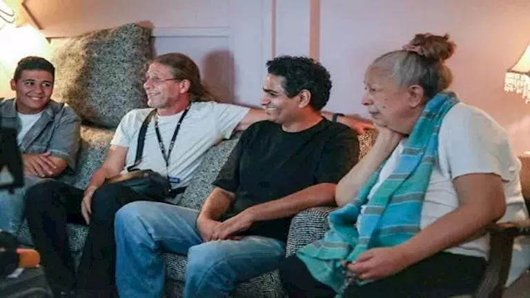 ونشر المؤلف محمد صلاح العزب، الصور، عبر حسابه على فيسبوك، وعلق: "من زيارة الفنانة الكبيرة سمية الألفي لكواليس فيلم سفاح التجمع".