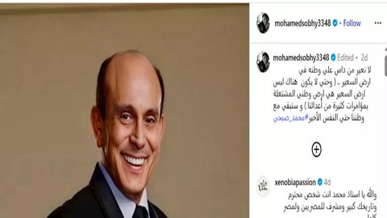 وكتب محمد صبحي، في تعليقه الأول: "لا نعير من داس على وطنه في أرض البعير، وسنبقى مع وطننا حتى النفس الأخير"، قبل أن يتم تعديل التعليق لاحقاً، بحذف "أرض البعير"، ووضع بدلا منها "أرض السعير".