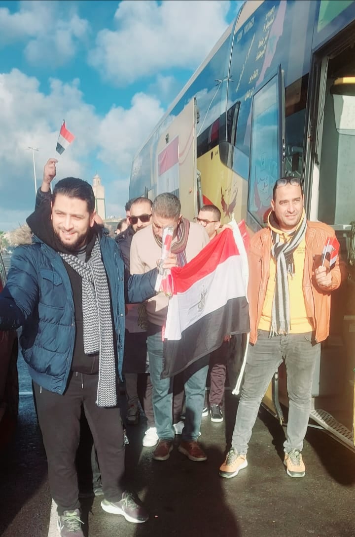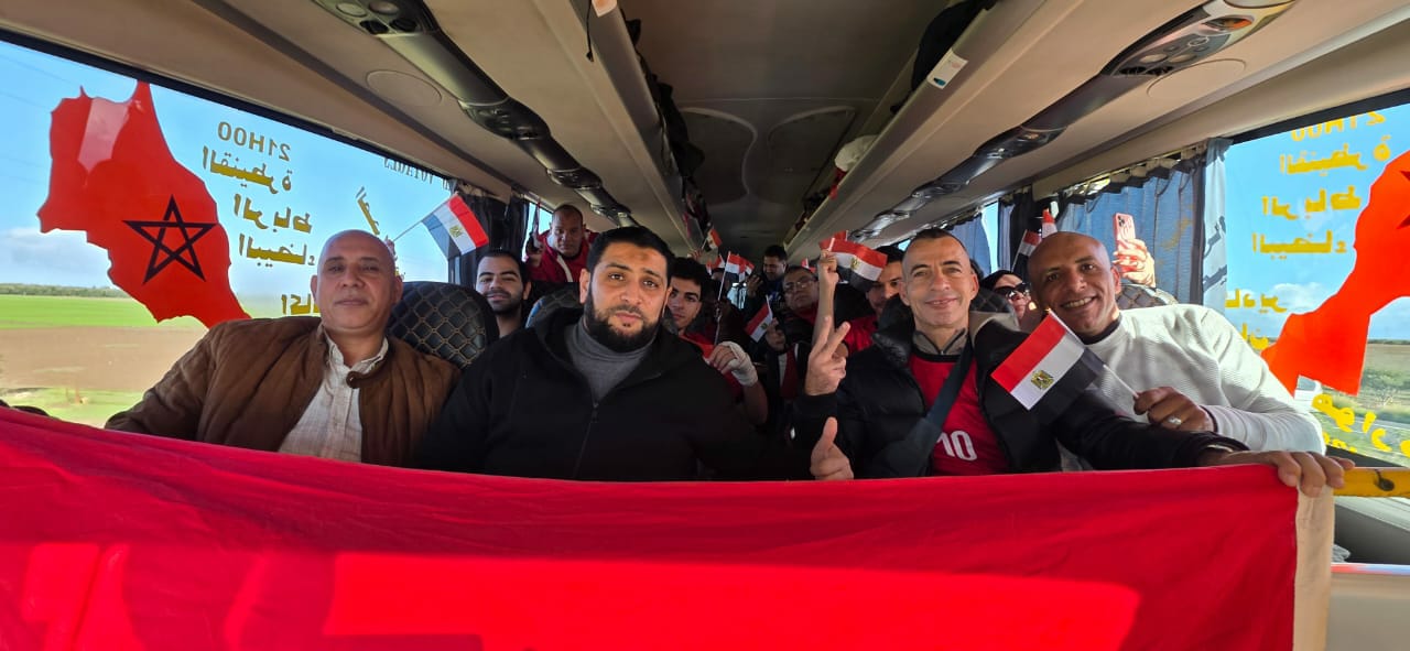 توجه أبناء الجالية المصرية المتواجدة في مدينتي الرباط والدار البيضاء، صباح اليوم إلى مدينة أكادير قاطعين أكثر من 1100 كيلو متر ذهابا وايابا من أجل حضور وتشجيع المنتخب الوطني الأول لكرة القدم في مباراته أمام زيمبابوي ضمن منافسات بطولة كأس الأمم الإفريقية 2025 التي تحتضنها المغرب.
