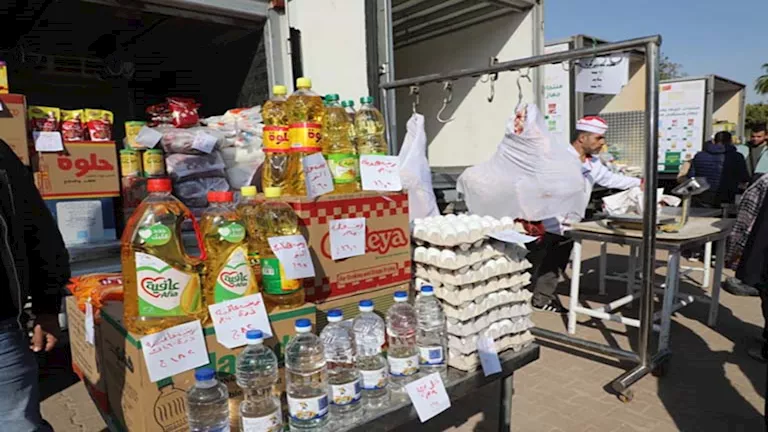 ويضم المعرض سيارات متنقلة تابعة للشركة القابضة للصناعات الغذائية بوزارة التموين والتجارة الداخلية، وجهاز مستقبل مصر، والتي توفر اللحوم الطازجة والسلع الغذائية الأساسية مثل السكر والأرز والزيت، إلى جانب سيارات شركة المصريين التابعة للقطاع العام لبيع البقوليات والعطارة ومنتجات غذائية متنوعة.