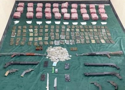 وعُثر بحوزة المتهمين على قرابة طن ونصف الطن من المواد المخدرة المتنوعة، شملت الحشيش والهيدرو والشابو والهيروين والأفيون، إضافة إلى 71 قطعة سلاح ناري متنوعة. وقدرت القيمة المالية للمواد المخدرة المضبوطة بأكثر من 103 ملايين جنيه، وتم اتخاذ الإجراءات القانونية اللازمة حيال الواقعة.