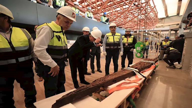 شهد شريف فتحي، وزير السياحة والآثار، اليوم الثلاثاء، بمرافقة الدكتور أحمد غنيم، الرئيس التنفيذي لهيئة المتحف المصري الكبير، وميادة مجدي، الممثل الأول الإقليمي للوكالة اليابانية للتعاون الدولي مصر (الچايكا- مصر)، أعمال تثبيت أول قطعة خشبية من ألواح مركب الملك خوفو الثانية التي تم ترميمها، على الهيكل الخشبي المُعد خصيصًا، إيذانًا ببدء المرحلة الأهم من مشروع إعادة تركيب المركب داخل متحف مراكب خوفو بالمتحف المصري الكبير.