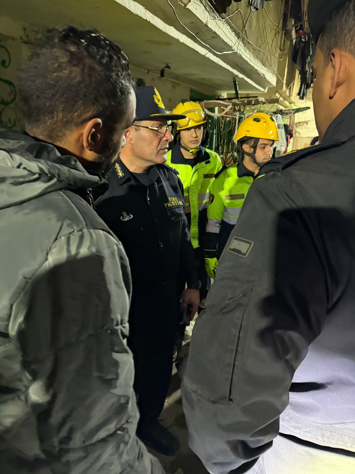 وبالانتقال والفحص ،تبين سقوط جزء من سقف مطبخ و حمام علي مساحه (۳۳) متر بالطابق السادس علي الطابق الخامس - عقار مكون من ارضي و ( ٥ ) طوابق وتم اخلاء السكان من العقار بمعرفه الحمايه المدنيه باجمالي عدد ( ٦ ) اسر وتم اتخاذ الإجراءات القانونية اللازمة تجاه الواقعة.