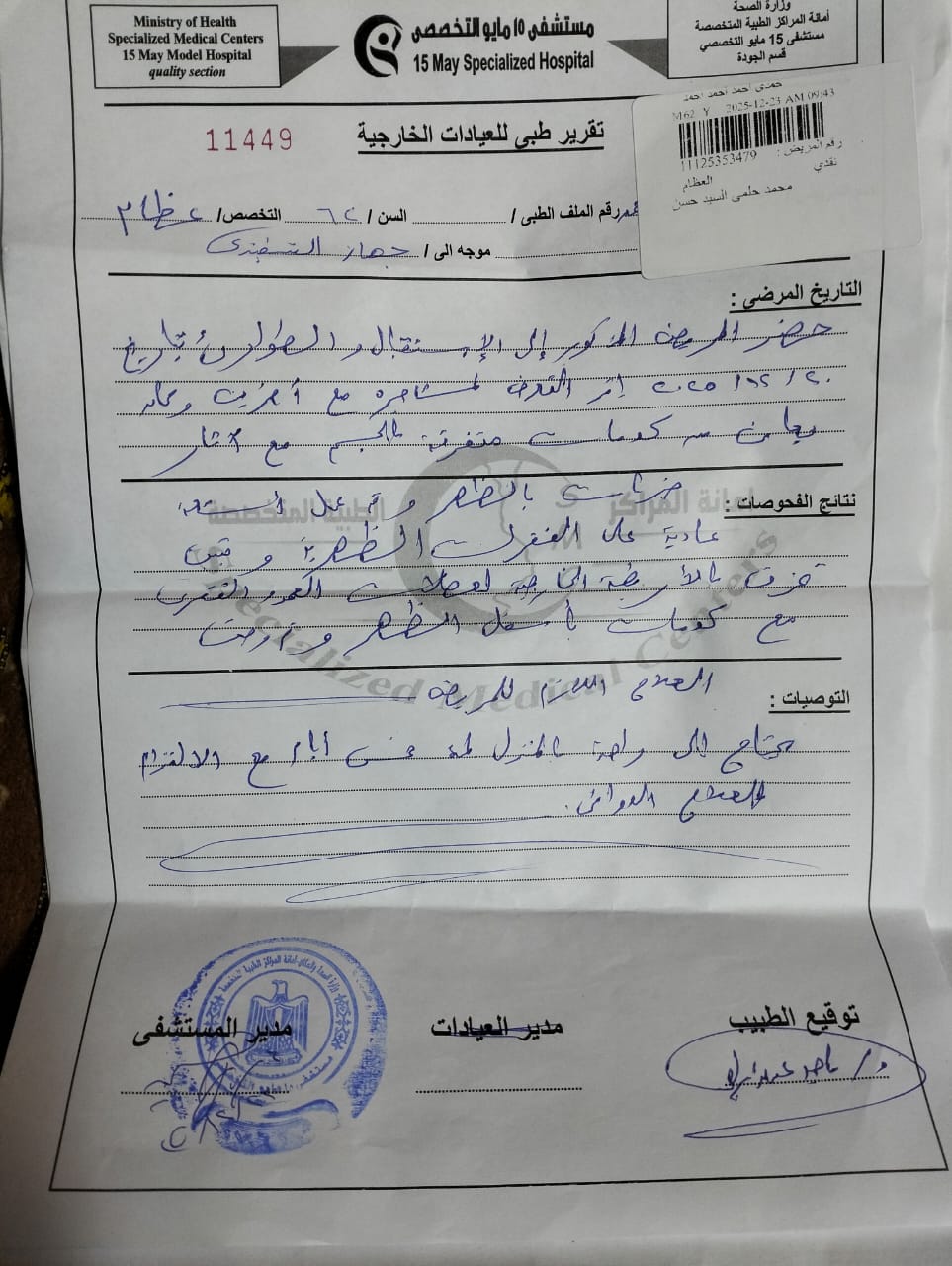 صورة أشعة للمسن توضح الاصابات الناتجة بسبب الاعتداء