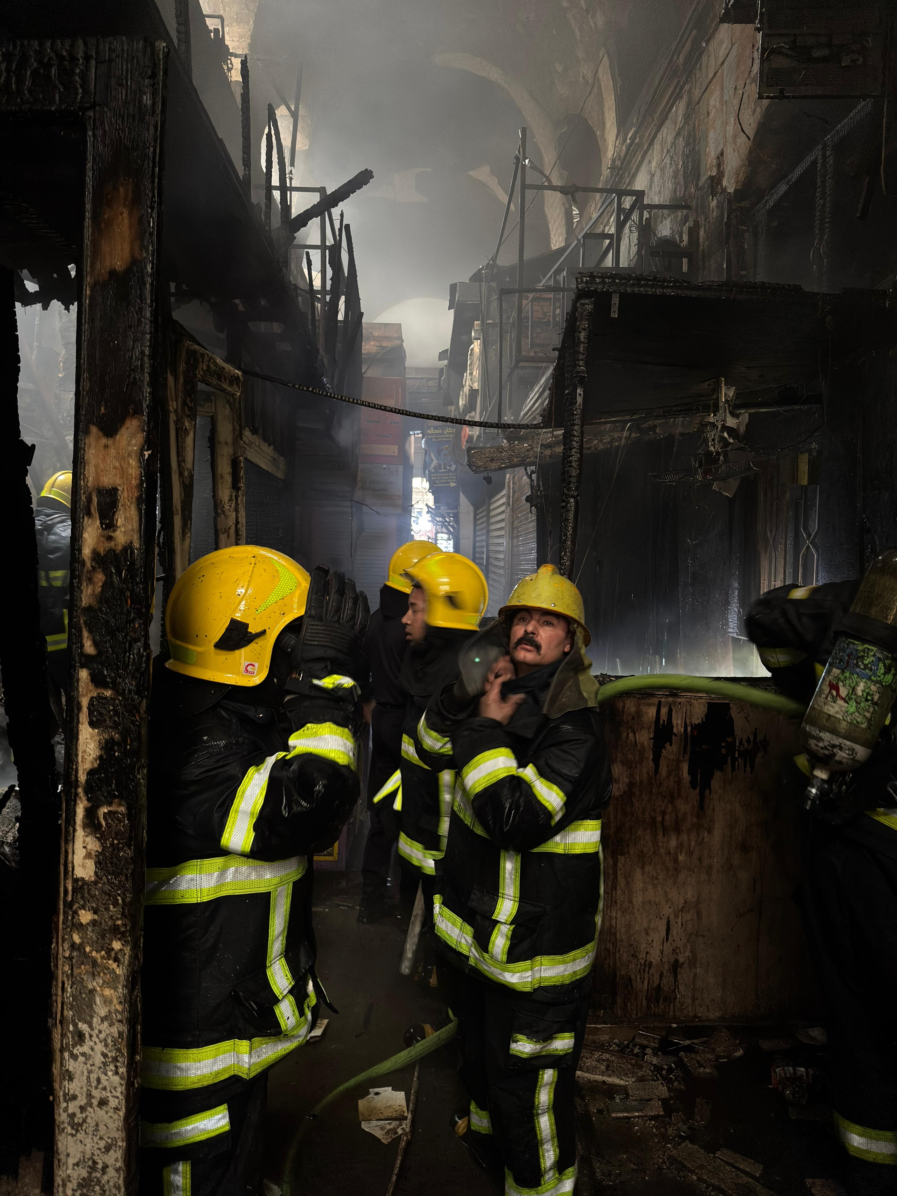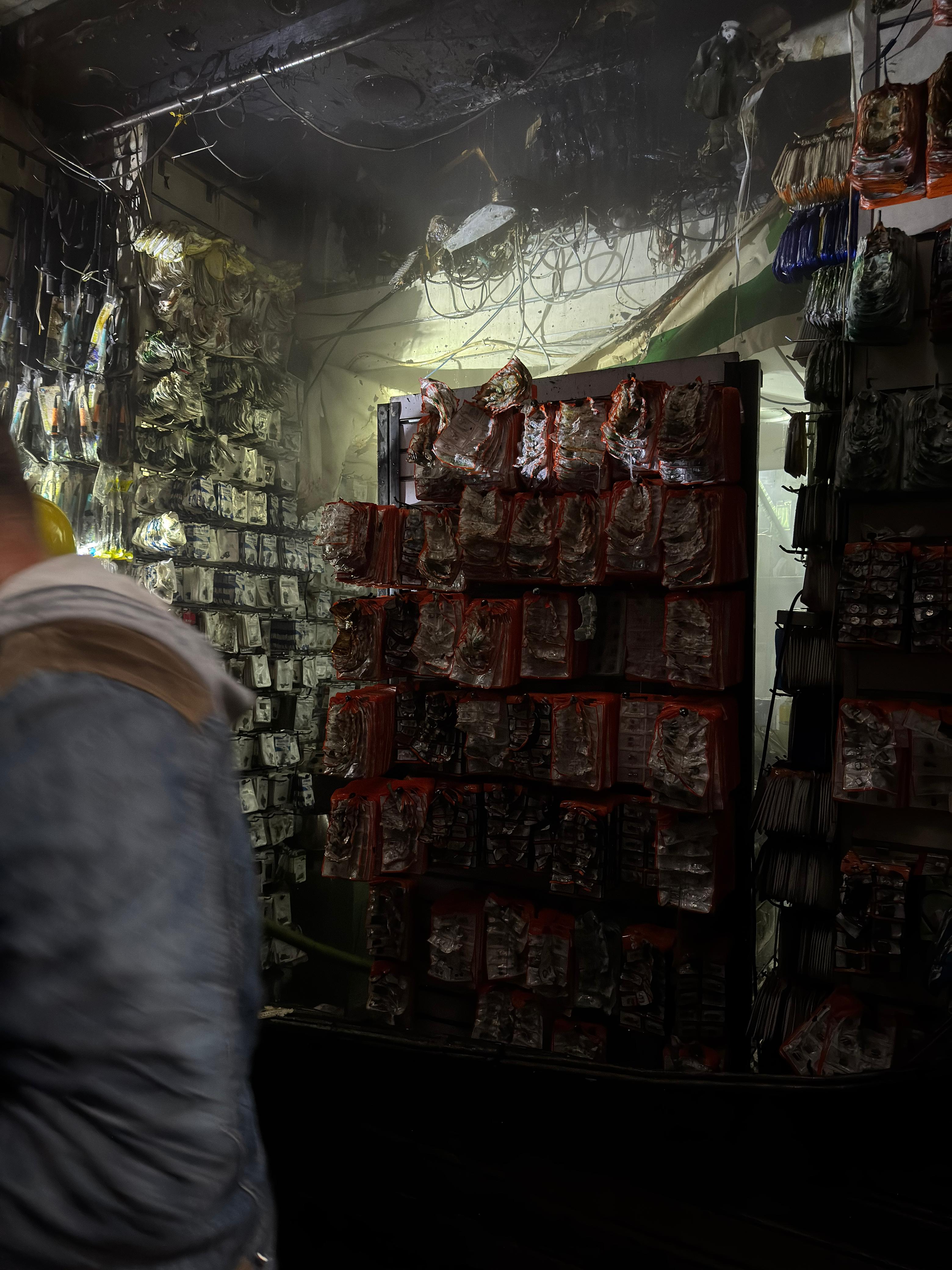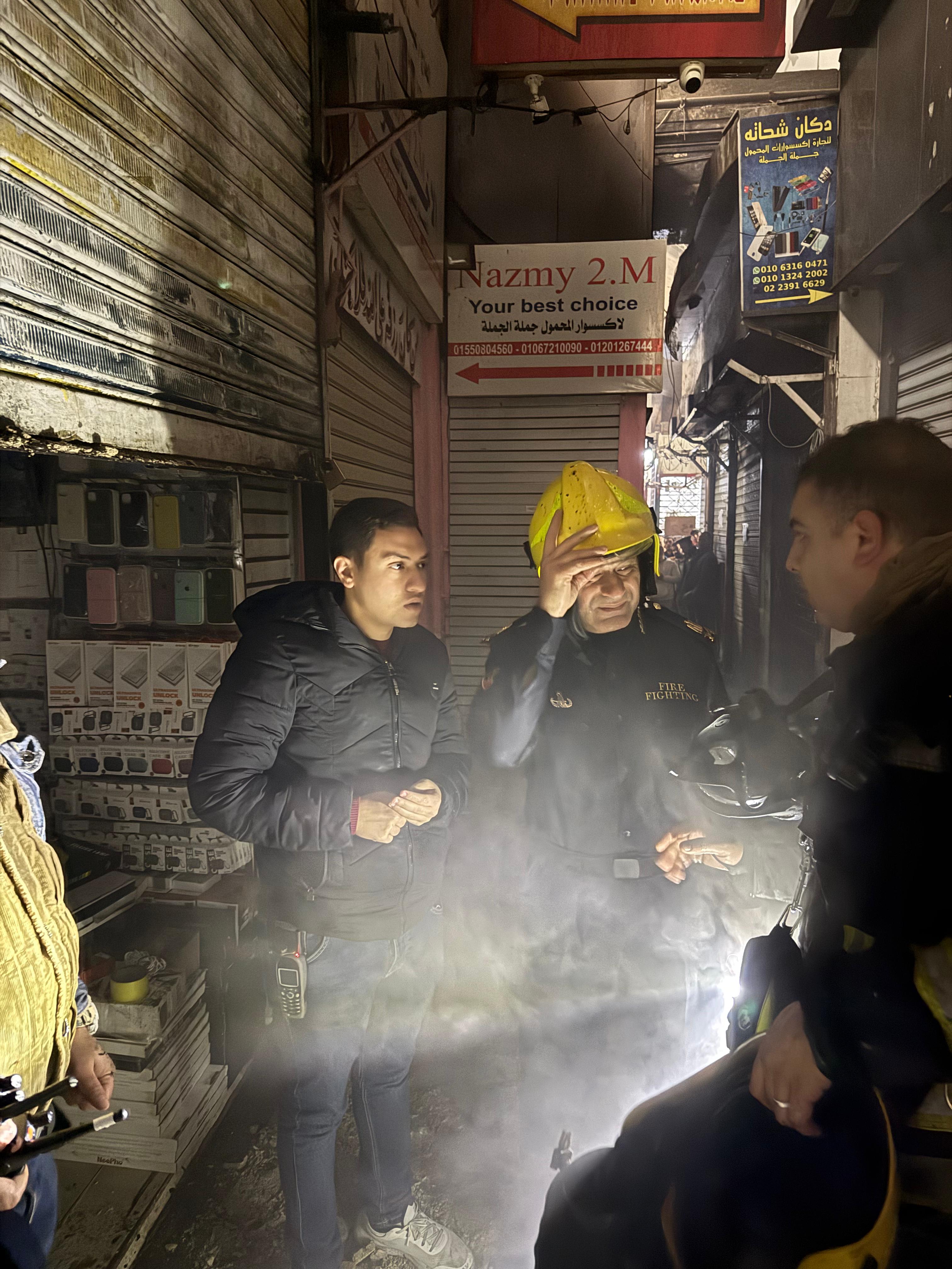 السيطرة على حريق محل اكسسوارت هواتف محمولة فى الموسكى ..صور
