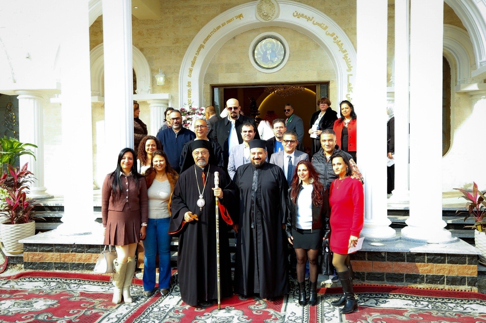 الكاتب الصحفى عبدالفتاح عبدالمنعم مع الأقباط الكاثوليك بالعبور وغبطة البطريرك الأنبا إبراهيم إسحاق
