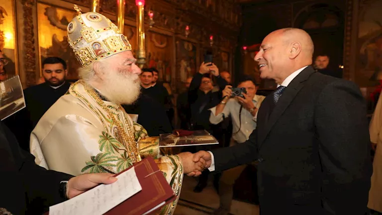 شهد إبراهيم صابر، محافظ القاهرة، احتفال بطريركية الروم الأرثوذكس بعيد ميلاد السيد المسيح برئاسة البطريرك ثيوثوروس الثاني، بابا وبطريرك الإسكندرية وسائر أفريقيا للروم الأرثوذكس.