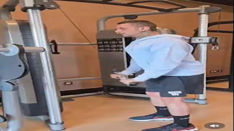 ظهر الفيشاوي في الفيديو يمارس التمارين داخل صالة الألعاب الرياضية "الجيم"، وعلق "لا تستسلم أبدًا".