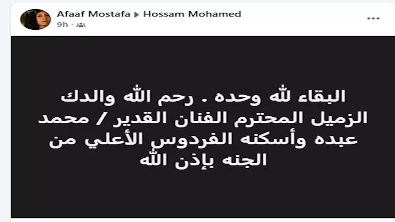 وكتب حسام "إنا لله وإنا إليه راجعون.. توفي إلى رحمة الله والدي الأستاذ/ محمد عبده.. أرجو الدعاء له بالرحمة والمغفرة".
