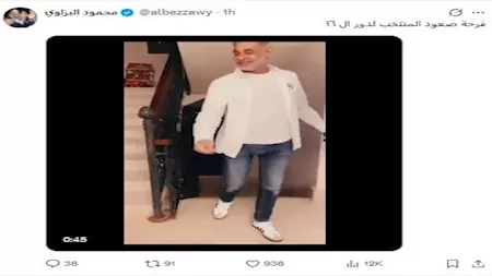 نشر البزاوي مقطع فيديو عبر حسابه على "X" ظهر خلاله وهو يرقص فرحا بتأهل المنتخب المصري وكتب: "فرحة صعود المنتخب دور الـ 16".