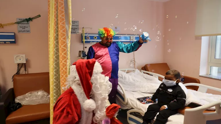 شهد مستشفى شفاء الأورمان لعلاج الأورام بالمجان بمحافظة الأقصر أجواءً احتفالية مميزة، تزامنًا مع احتفالات أعياد الكريسماس واستقبال العام الجديد، حيث فاجأ "بابا نويل" الأطفال المرضى داخل صالات الانتظار وغرف العلاج، وسط أجواء مليئة بالبهجة والفرح.
