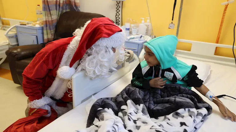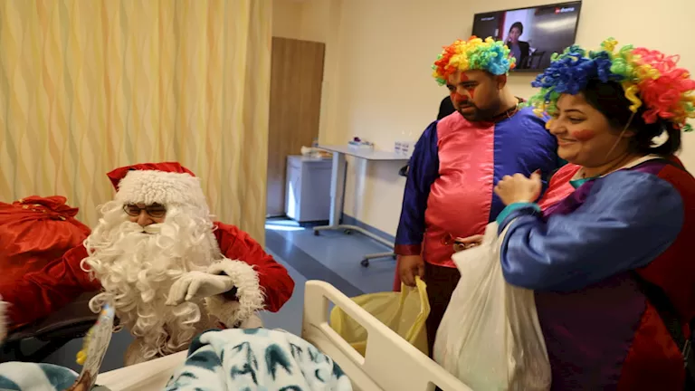 وتحولت أروقة المستشفى إلى مشهد إنساني دافئ، بعدما التف الأطفال حول "بابا نويل" الذي ظهر مرتديًا زي "سانتا كلوز"، حاملاً معه هدايا الكريسماس والألعاب والورود، وقدمها للأطفال أثناء تلقيهم جلسات العلاج، وسط أنغام الموسيقى وأغاني الكريسماس، في أجواء أدخلت السرور على قلوب الأطفال وذويهم.