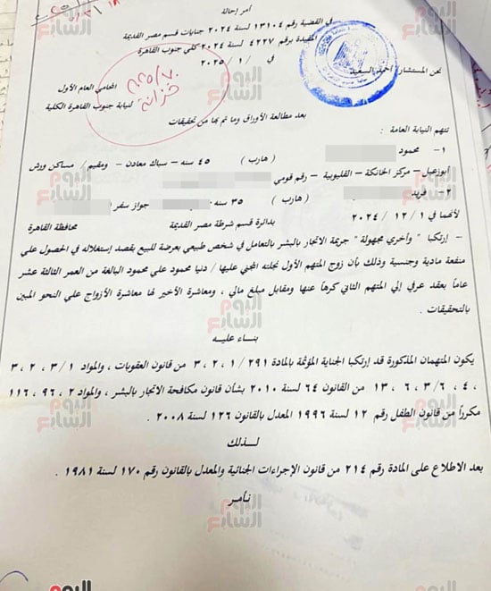 على الفور أبلغت صاحبة العقار خط نجدة الطفل التي حررت بدورها محضرًا وأحيل الأب في القضية رقم 13104 لسنة 2024، جنايات مصر القديمة، للمحاكمة بتهمة الاتجار في البشر.. وصدر حكما بسجنه 3 سنوات مشدد في 26 نوفمبر 2025، لتعود الطفلة لمنزلها، في انتظارها مأساة جديدة، فوالدها هارب من العدالة بعد الحكم عليه بالسجن المشدد بقضية اتجار بالبشر.. وأشقاءها القصر بلا معيل.
