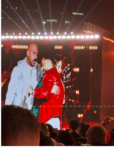 أشعل النجم تامر حسنى الحفل الغنائى الضخم المقام بالعاصمة الجديدة، ليلة رأس السنة، بميدلى لأغنية وسط صياح كبير من الجمهور، ثم صعدت فتاة معجبة على المسرح تحتضنه، ليقول تامر: بتقولى حمد الله على السلامة وكده.