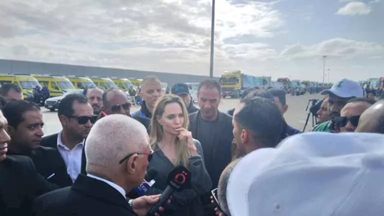 وجهت الممثلة الأمريكية أنجلينا جولي، رسالة تضامن مع الشعب الفلسطيني من خلال زيارتها اليوم لمعبر رفح لمتابعة جهود الدعم الإنساني ودخول المساعدات إلى قطاع غزة.