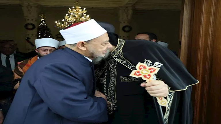 زار فضيلة الإمام الأكبر الدكتور أحمد الطيب، شيخ الأزهر الشريف، اليوم الاثنين، يرافقه وفد أزهري رفيع المستوى، قداسة البابا تواضروس الثاني، بابا الإسكندرية، وبطريرك الكرازة المرقسية؛ للتهنئة بأعياد الميلاد، داعيًا المولى -عز وجل- أن يعيد المناسبات السعيدة على مصرنا الحبيبة؛ بمسلميها ومسيحييها، وأن يرزقها الأمن والأمان وأن يوفِّر لها كل سبل التقدم والرخاء.