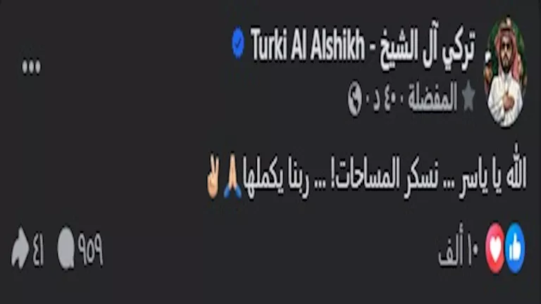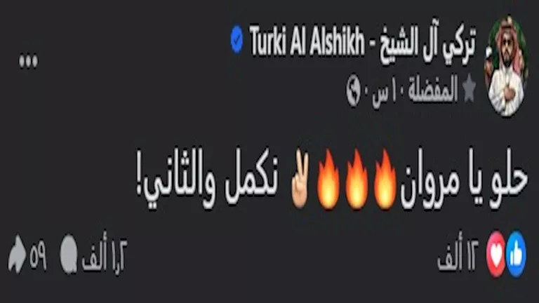 وعلق تركي آل الشيخ على تفوق منتخب مصر بثلاثية على حساب منتخب بنين، عبر حسابه الرسمي بموقع التواصل الاجتماعي "فيس بوك"، وكتب: "حلو يا مروان، نكمل والثاني، الله يا ياسر نسكر المساحات!، ربنا يكملها".