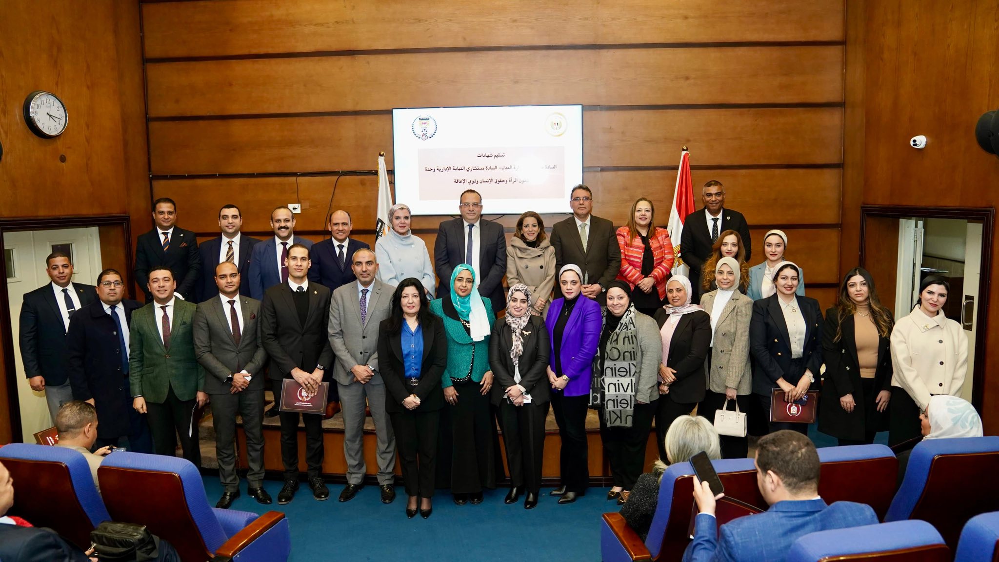 وذلك تحت رعاية المستشار عدنان فنجري وزير العدل، والمستشار محمد الشناوي رئيس هيئة النيابة الإدارية، وفي ضوء التعاون المشترك لوحدة شئون المرأة وحقوق الإنسان وذوي الإعاقة برئاسة المستشارة بريهان محسن، وقطاع التخطيط والتنمية الإدارية والمتابعة بوزارة العدل برئاسة المستشار خالد النشار، والمعهد التخطيط القومي برئاسة الأستاذ الدكتور أشرف العربي، وبحضور الأستاذ الدكتور أشرف صلاح الدين نائب رئيس المعهد للتدريب والاستشارات وخدمة المجتمع.