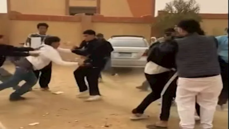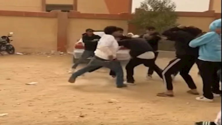 ورصدت الأجهزة الأمنية الفيديو المتداول، والذي يُظهر مجموعة من الطلاب يتشاجرون أمام مدرسة تجريبية بالمنطقة، مع تبادل الاعتداء بالضرب بشكل عنيف، فيما قام أحدهم بإشهار سلاح أبيض أثناء المشاجرة.
