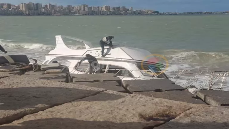 ورجحت المعاينة الأولية أن المركب كان راسيًا بالقرب من الشاطئ وقت اشتداد النوة، إلا أن قوة الأمواج المصاحبة للرياح العاتية دفعته بقوة نحو الصخور، ما أدى إلى تحطمه جزئيًا، وسط حالة من الذهول بين المارة ورواد الكورنيش.